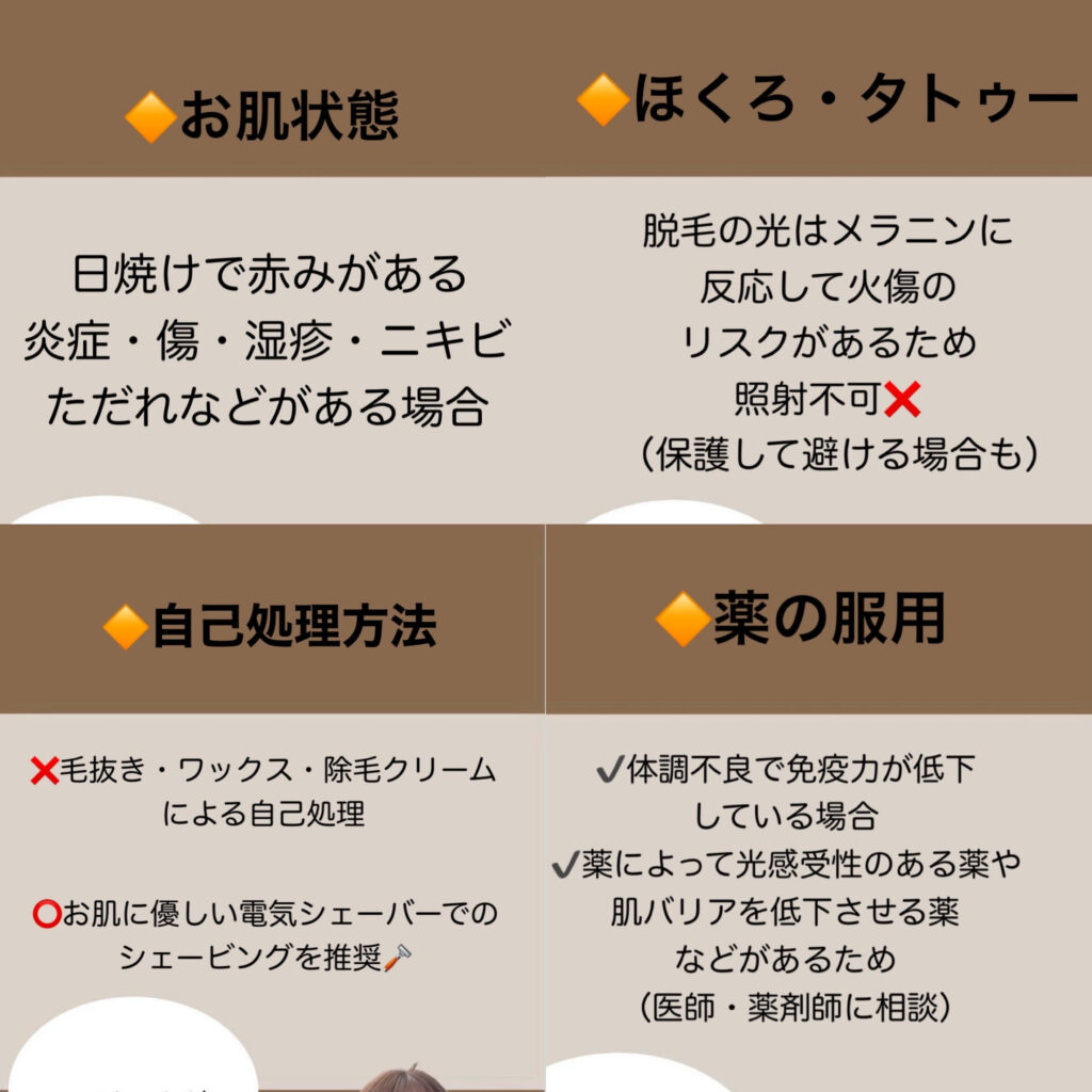 脱毛施術においての禁忌事項です(^^)/